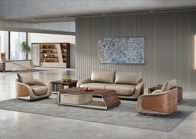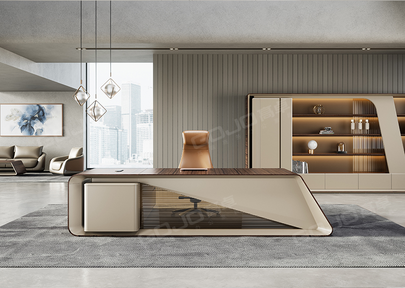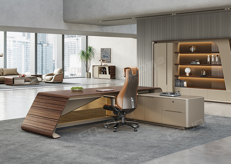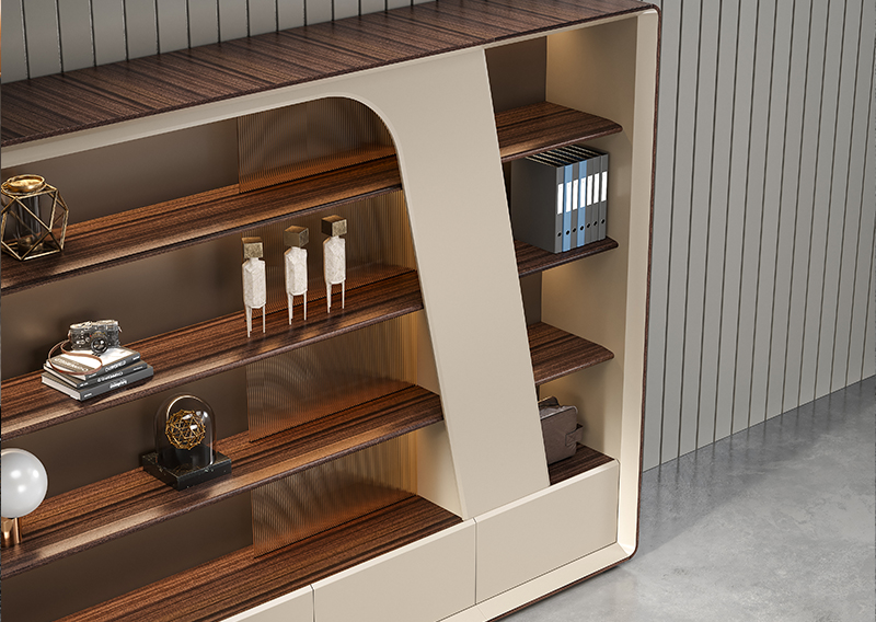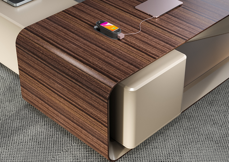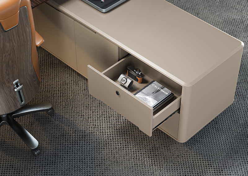 附台储物空间充足,可收纳各种文件物品,抽屉配备有智能指纹锁,确保商业信息文件物品安全。