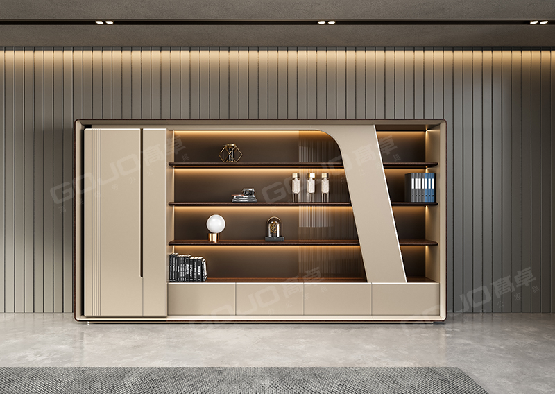 整体简约时尚,彰显整体设计感。加厚层板内藏灯带,亚克力点缀,增添氛围感。